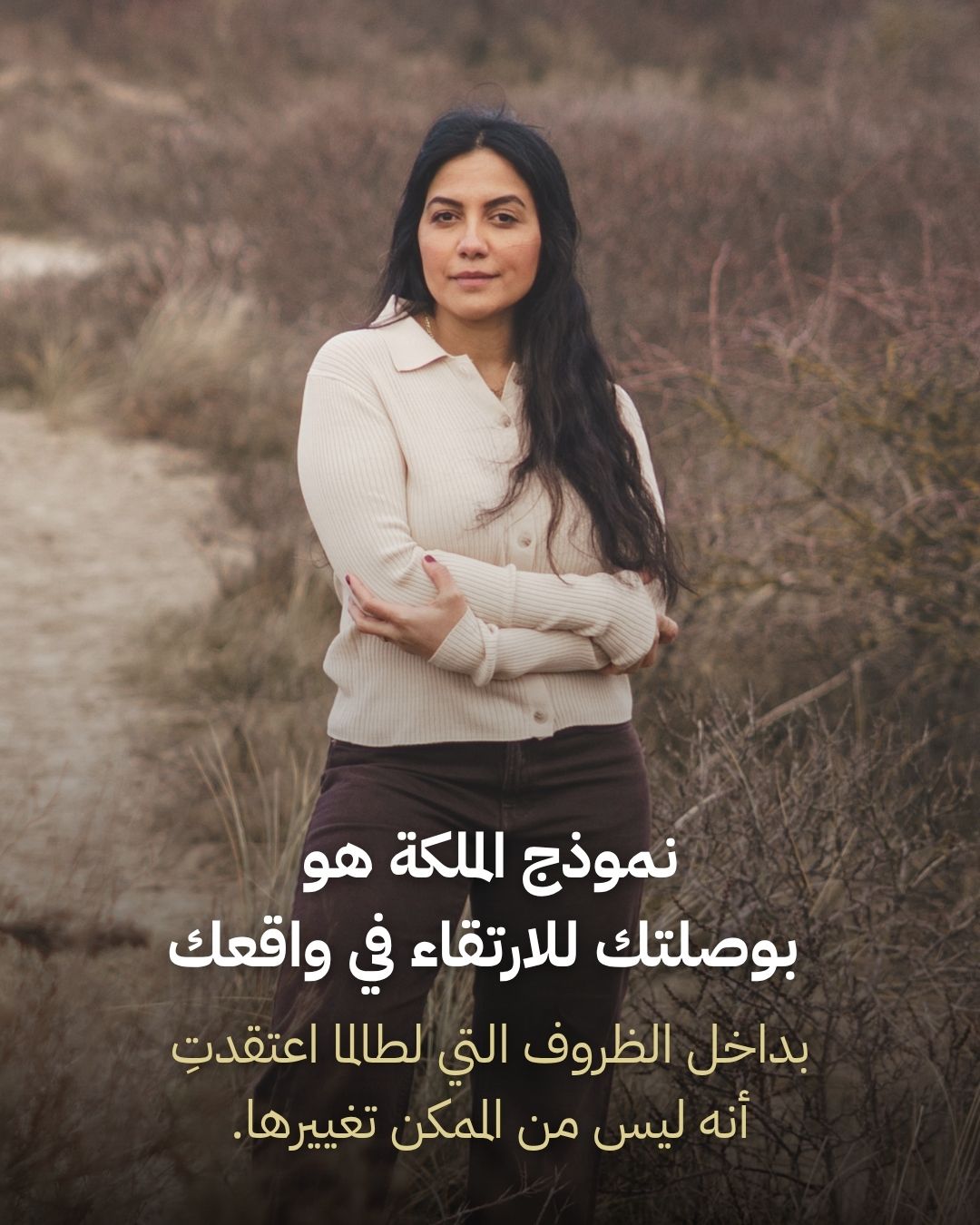 فالملكة ليست شخصيّة نمثلها بل نموذج عميق متواجد في الوعي الجمعي الأنثوي وبالإمكان لأي امرأة أن تفعّل صفات أرقى أشكال الأنوثة الخلّاقة بداخلها عندما تختار أن تخرج من وعي الأميرة الحالمة إلى وعي السيادة التي بإمكانها أن تصنع وتقود مملكتها.